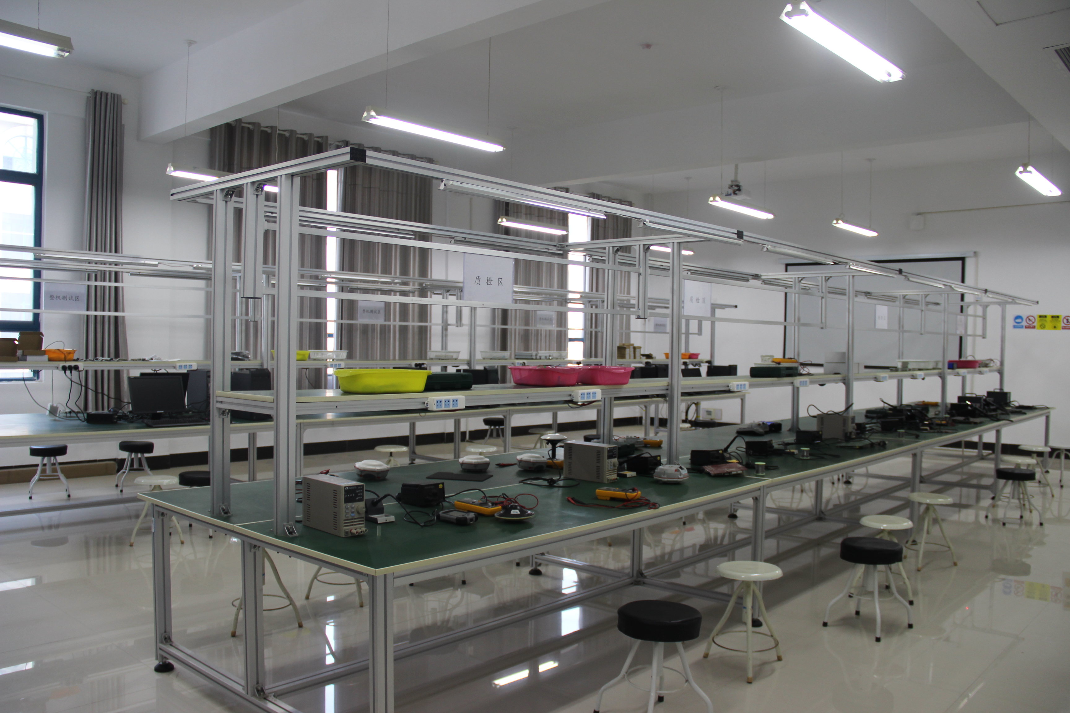 本實(shí)訓(xùn)室側(cè)重于北斗衛(wèi)星接收機(jī)的芯片測試、主板焊接、整機(jī)組裝、整機(jī)測試等工作。實(shí)訓(xùn)室面積120余平方米,設(shè)備價(jià)值120余萬元,具有板卡信號(hào)測試、組裝、焊接、總裝等工藝流程,具有24個(gè)生產(chǎn)工位。