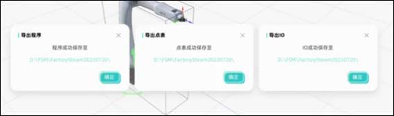 示教面板上方“導(dǎo)出點位”、“導(dǎo)出程序”“導(dǎo)出I0”按鈕,分別支持對當(dāng)前點位表、程序、10的導(dǎo)出。