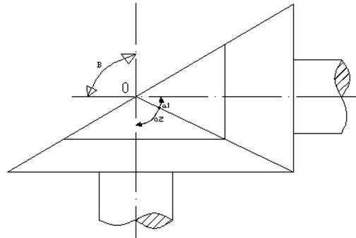 ⑵計(jì)算圓錐齒輪傳動(dòng)大的交錯(cuò)角和分度圓錐角;