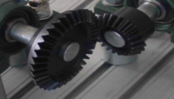 在這個(gè)實(shí)驗(yàn)中,將執(zhí)行安裝步驟和校準(zhǔn)錐齒圓柱齒輪傳動(dòng)系統(tǒng),(圖A的傳動(dòng)機(jī)構(gòu)的搭建和校準(zhǔn)見 實(shí)驗(yàn)三、直齒圓柱齒輪);