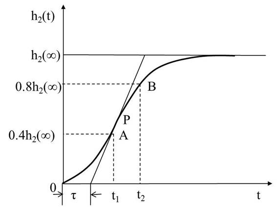 (3)h2(t)|t=t2=0.8 h2(∞)時曲線上的點B和對應(yīng)的時間t2。