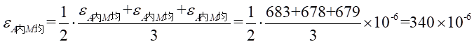 (2)由實驗數(shù)據(jù)可知,A-A截面上內(nèi)圈處由彎曲引起的平均應(yīng)變?yōu)椋?br />