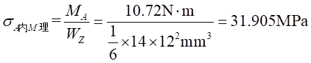 彎曲應(yīng)力隨著距離對稱軸的距離大小不同而改變,但是其最大值是確定的,彎矩對A-A截面內(nèi)圈處產(chǎn)生的彎曲正應(yīng)力為: