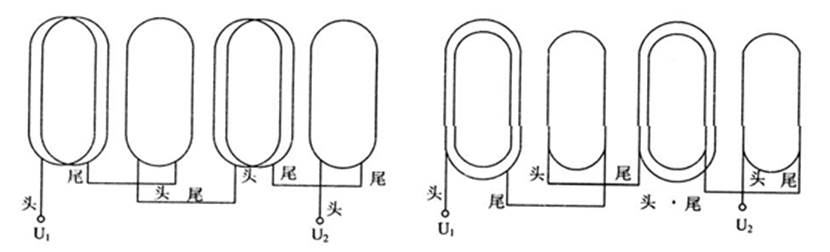 3) 線圈跨距的判別。繞組的線圈距可在拆線中查出。但必須注意同一繞組中可能有不等跨距的線圈(如交叉式、同心式等)。這些在拆線時(shí)要仔細(xì)記錄。