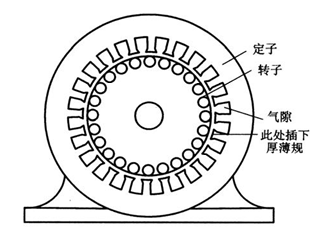 機(jī)定子與轉(zhuǎn)子間的氣隙在各處均應(yīng)相等,其尺寸應(yīng)條符合規(guī)定值。