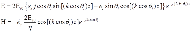 取坐標(biāo)系如圖。能與上面類似的處理,可得此時(shí)媒質(zhì)1中的合成波的電磁場(chǎng)表示式為
