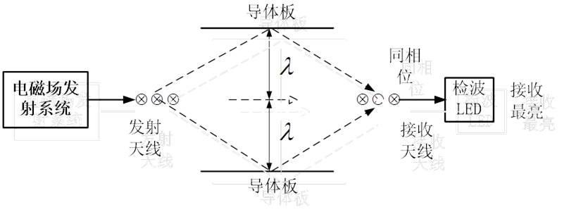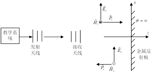 圖2實(shí)驗(yàn)系統(tǒng)波長(zhǎng)測(cè)量原理圖和電磁波垂直入射模型