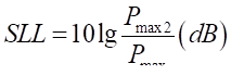 (5) 副瓣電平(Side Lobe Lever, SLL)。指副瓣最大值與主瓣最大值之比,一般也以分貝表示,其中: