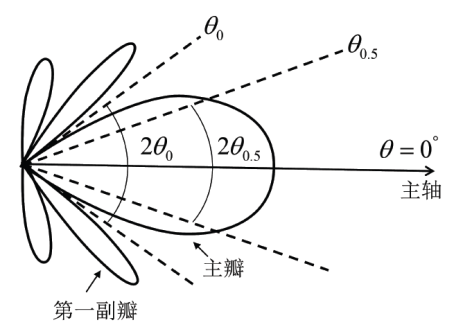 (4) 副瓣寬度。指第一副瓣兩邊兩個(gè)零輻射方向之間的夾角;