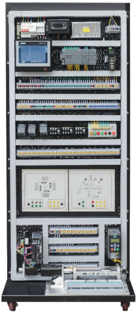 工作臺(tái)以網(wǎng)孔架為基礎(chǔ)實(shí)訓(xùn)單元,仿真企業(yè)真實(shí)環(huán)境,可開展PLC系統(tǒng)基礎(chǔ)模塊連接實(shí)訓(xùn)。該工作臺(tái)采用單面實(shí)訓(xùn)方式,實(shí)訓(xùn)區(qū)主要由電源單元、PLC單元、PLC學(xué)習(xí)箱單元、基礎(chǔ)實(shí)訓(xùn)單元、擴(kuò)展實(shí)訓(xùn)區(qū)(伺服控制小車運(yùn)動(dòng)實(shí)訓(xùn)單元、步進(jìn)電機(jī)單元和變頻器單元)六大部分組成。