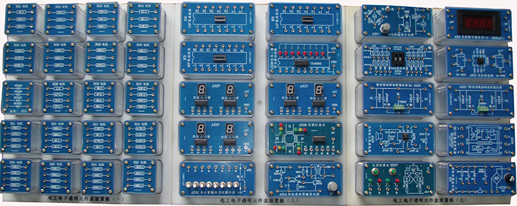 (透明電子元件模塊示例圖,共9塊板,140多只透明有機(jī)塑料封閉元件盒)