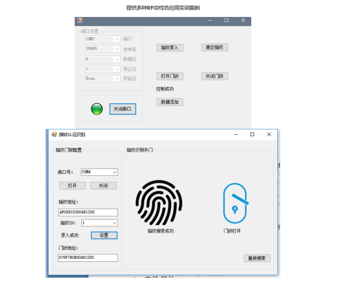 身份識(shí)別綜合實(shí)訓(xùn)(指紋+電機(jī))C# 圖書管理應(yīng)用實(shí)訓(xùn)(二維碼+高頻)C# ETC模擬收費(fèi)應(yīng)用實(shí)訓(xùn)(高頻+2.4G+電機(jī))C# 倉(cāng)儲(chǔ)出入庫(kù)綜合實(shí)訓(xùn)(超高頻)C# 牲畜養(yǎng)殖耳標(biāo)應(yīng)用實(shí)訓(xùn)(低頻)C# 人臉檢測(cè)應(yīng)用實(shí)訓(xùn) |