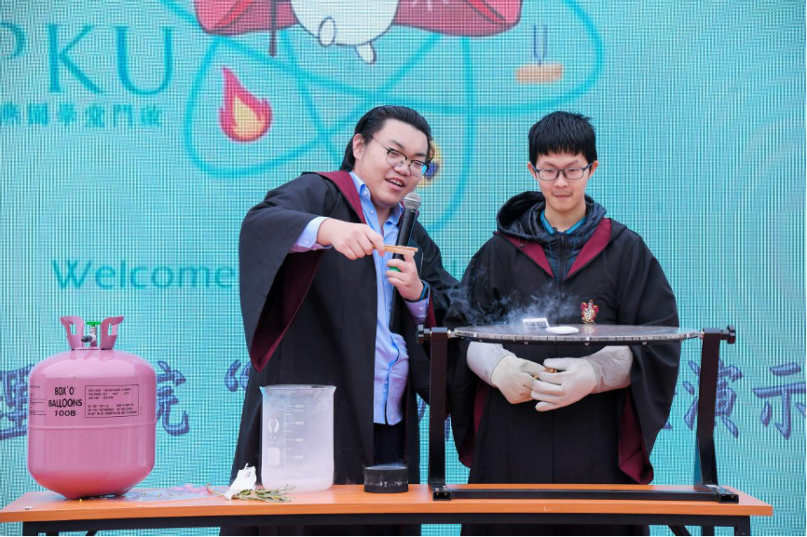 “挑戰(zhàn)杯”學(xué)術(shù)文化月科創(chuàng)學(xué)術(shù)成果展活動(dòng)上同學(xué)演示超導(dǎo)磁懸浮實(shí)驗(yàn)