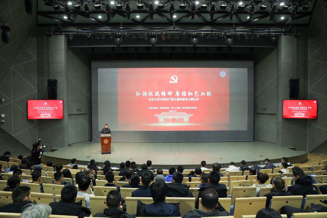 在“一二·九”運(yùn)動(dòng)爆發(fā)90周年之際,為弘揚(yáng)偉大抗戰(zhàn)精神,傳承北大紅色基因,引導(dǎo)師生以史為鑒、埋頭苦干、開創(chuàng)未來,2025年12月8日,由北京大學(xué)黨委宣傳部、黨委組織部、學(xué)生工作部和醫(yī)學(xué)部黨委宣傳部聯(lián)合舉辦的“弘揚(yáng)抗戰(zhàn)精神,賡續(xù)紅色血脈——北京大學(xué)中國共產(chǎn)黨人精神譜系主題宣講”在百周年紀(jì)念講堂李瑩廳舉行,近300位師生聆聽了宣講。
