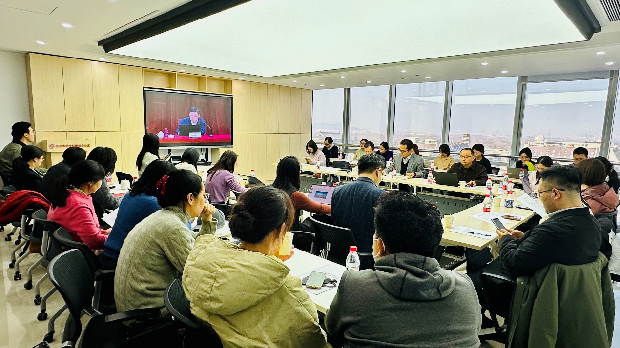 2025年12月11日下午,北京大學(xué)舉行2025年秋季學(xué)期師生黨員基本培訓(xùn)“同上一堂課”集體學(xué)習(xí),共同觀看中央黨校(國家行政學(xué)院)科研部主任陳曙光教授“深入學(xué)習(xí)貫徹習(xí)近平新時(shí)代中國特色社會(huì)主義思想”專題授課視頻。社會(huì)科學(xué)部黨支部與學(xué)科建設(shè)辦公室黨支部在燕園大廈1113會(huì)議室集體觀看,共同探討交流。社會(huì)科學(xué)部部長、黨支部書記初曉波,社會(huì)科學(xué)部副部長林豐民、王棟、郭琳,學(xué)科建設(shè)辦公室副主任、黨支部書記何潔,學(xué)科建設(shè)辦公室副主任、理工學(xué)部辦公室主任原帥,社會(huì)科學(xué)部黨支部、學(xué)科建設(shè)辦公室黨支部全體人員參加學(xué)習(xí)。