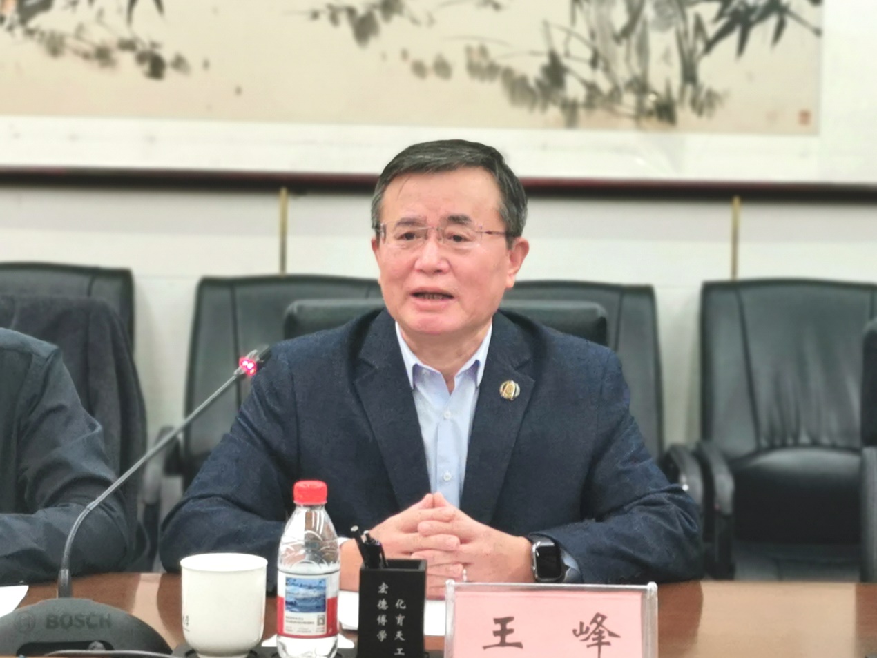 王峰對(duì)許海軍一行來(lái)訪表示了熱烈歡迎,并介紹了學(xué)校的學(xué)科特色、人才培養(yǎng)及平臺(tái)建設(shè)情況。他表示,學(xué)校與遼寧省在科技創(chuàng)新、產(chǎn)業(yè)轉(zhuǎn)型和生態(tài)建設(shè)方面一直保持密切的交流,校領(lǐng)導(dǎo)多次帶隊(duì)到遼寧調(diào)研,推動(dòng)我校優(yōu)勢(shì)學(xué)科服務(wù)遼寧現(xiàn)代化產(chǎn)業(yè)發(fā)展,希望未來(lái)雙方通過搭建合作平臺(tái)、創(chuàng)新合作機(jī)制,進(jìn)一步發(fā)揮北京化工大學(xué)的創(chuàng)新資源優(yōu)勢(shì),助力遼寧全面振興發(fā)展。