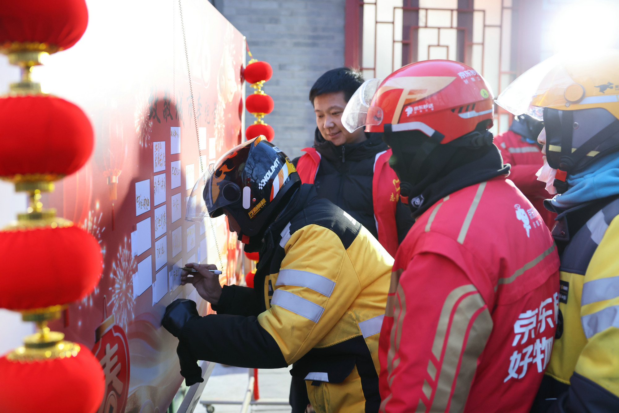 南門(mén)驛站持續(xù)開(kāi)展“為你加油”節(jié)日送溫暖活動(dòng),聯(lián)合燕園街道與美團(tuán)黨委,推出“暖冬守護(hù),跨年同行——致敬城市奔跑者”主題活動(dòng);顒(dòng)為外賣(mài)騎手準(zhǔn)備了圍巾、羽絨馬甲等御寒物品,還在現(xiàn)場(chǎng)貼心提供姜糖茶驅(qū)寒。騎手們通過(guò)為北大師生書(shū)寫(xiě)新年祝福,即可領(lǐng)取對(duì)應(yīng)物品,短短時(shí)間吸引了約280人參與。不少騎手感動(dòng)地表示:“在北大真正感受到了尊重。”此外,驛站也通過(guò)外賣(mài)格口為師生準(zhǔn)備了零食、冰箱貼等新年小禮,讓溫暖在校園內(nèi)外雙向流動(dòng)。