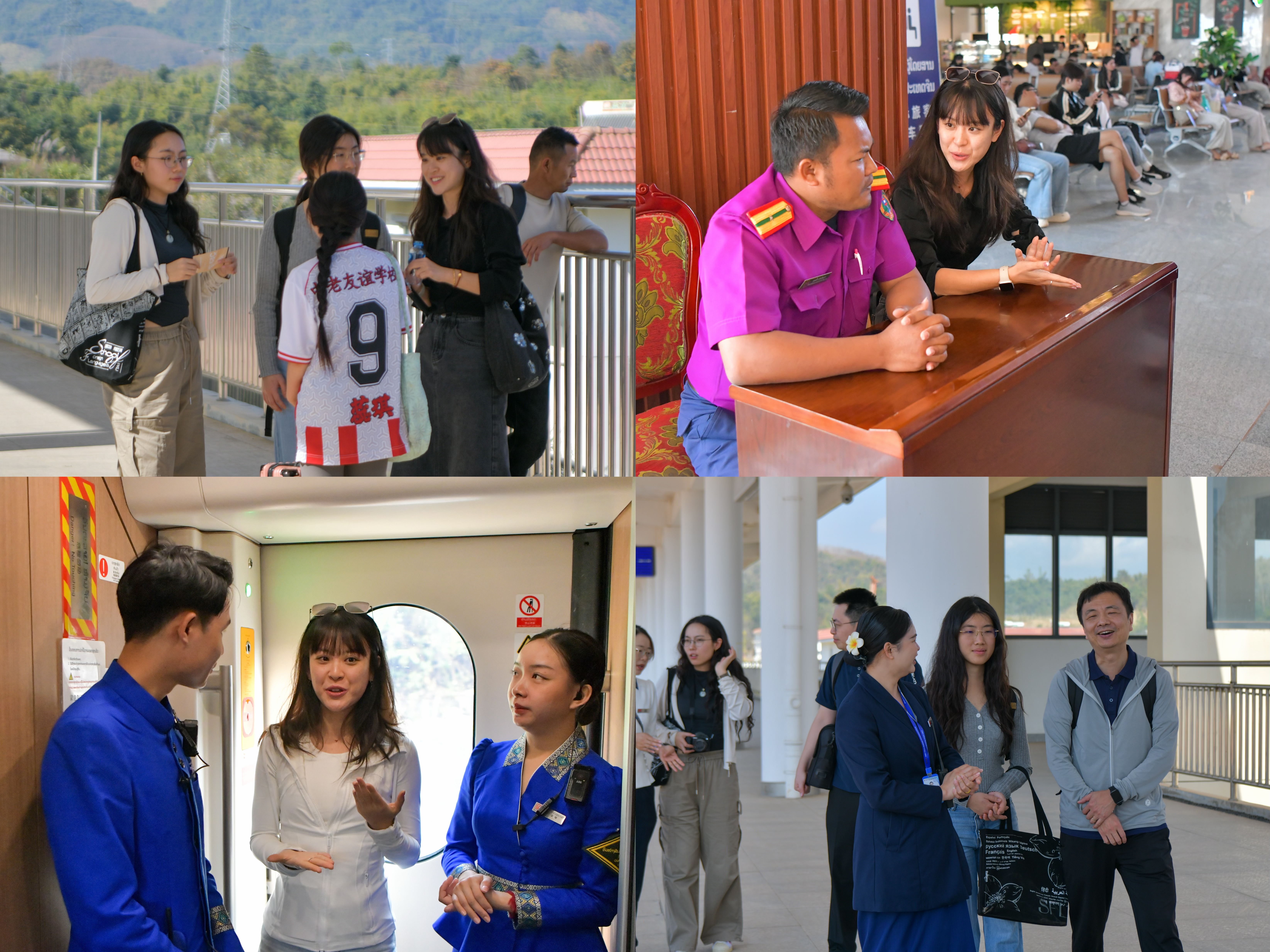 13—18日,調(diào)研團乘坐中老鐵路,調(diào)研沿線各主要節(jié)點的運營與發(fā)展情況。調(diào)研圖實地考察了中老磨憨-磨丁經(jīng)濟合作區(qū),通過參觀展廳、口岸與管理委員會座談,深入理解了跨境合作區(qū)的運作模式與發(fā)展挑戰(zhàn)。在磨丁經(jīng)濟特區(qū)海誠集團相關(guān)負責(zé)人帶領(lǐng)下,調(diào)研團師生深入了解特區(qū)規(guī)劃和中資企業(yè)屬地化管理實踐。在萬象,調(diào)研團先后赴中國建材礦業(yè)咨詢公司、南方電網(wǎng)瀾湄國際能源公司以及賽色塔綜合開發(fā)區(qū)內(nèi)的云南建投、老中鐵路公司進行調(diào)研,全方位了解了中老鐵路的建設(shè)情況和近5年來的運營情況、中資企業(yè)在老撾的產(chǎn)業(yè)布局、產(chǎn)業(yè)園區(qū)建設(shè)與管理經(jīng)驗,收獲了關(guān)于產(chǎn)業(yè)協(xié)同與本地化管理的經(jīng)驗。在瑯勃拉邦,調(diào)研團主要親身體驗中老鐵路對人員流動、人文交流和跨國旅游帶來的促進作用。在納磨,調(diào)研團參觀了中老電網(wǎng)項目工地及企業(yè)援建的小學(xué),深入了解中國電力技術(shù)對老撾經(jīng)濟和當(dāng)?shù)孛癖娚顜淼淖兓,并實地感受中資項目在履行社會責(zé)任、促進可持續(xù)發(fā)展方面的具體成效。在孟賽,調(diào)研團成員前往孟賽中國烈士陵園,向在援老抗美中犧牲的中國烈士表達深切的緬懷和崇高的敬意。調(diào)研團還參與當(dāng)?shù)氐拇笮臀幕?jié),感受民族文化的多樣性魅力。此外,調(diào)研團還沿途對瀾滄號乘務(wù)員、列車長、孟賽站站長、中老友誼學(xué)校學(xué)生進行了深度訪談,了解兩國員工與中老鐵路共同成長的經(jīng)歷。