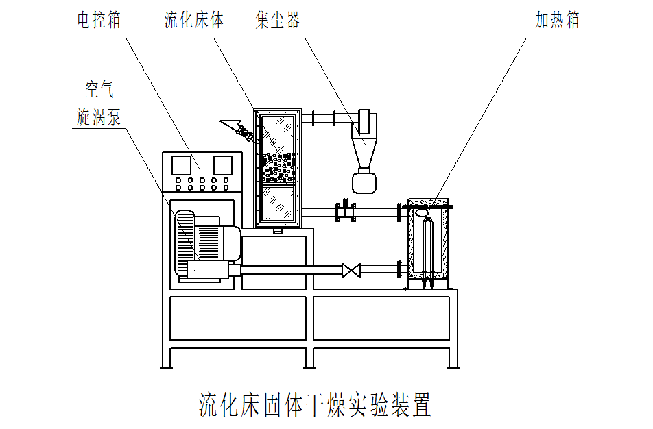 1、該實驗裝置主要由空氣旋渦泵、加熱箱、流化床體、集塵器、加料斗、旋風(fēng)分離、U型壓差計(2根)、孔板流量計、電控箱等部件組成。