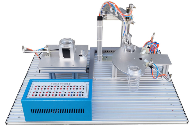 六邊形實(shí)訓(xùn)控制屏:實(shí)訓(xùn)控制屏采用六邊形結(jié)構(gòu)?蚣懿捎30 R的半圓形鋁型材經(jīng)過(guò)專用連接件組裝,頂面與底面采用§1.2mm厚的優(yōu)質(zhì)鋼板連接。三邊弧形作業(yè)面均配置有實(shí)訓(xùn)電源、氣源及PLC主機(jī)控制系統(tǒng),且相互獨(dú)立,互不干涉;控制面板按鍵為薄膜輕觸式設(shè)計(jì),具有漏電保護(hù)、短路保護(hù)功能。電源控制屏頂面采用10mm厚的鋁框包邊,內(nèi)置有直徑為850mm的多角度公共操作平臺(tái),公共操作平臺(tái)能360°旋轉(zhuǎn),能做120°定位,平臺(tái)頂板采用10mm厚的鋁板加工成型,能載重約60Kg的典型工作任務(wù)。