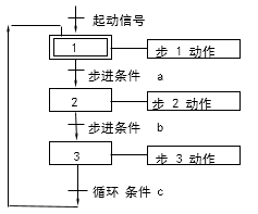 一個(gè)三步循環(huán)步進(jìn)的順序功能圖如圖1所示。
