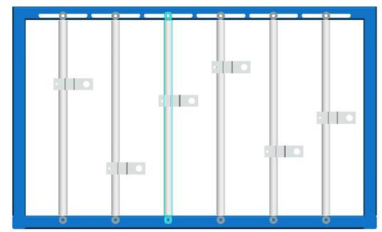 實(shí)驗(yàn)臺(tái)機(jī)架如圖2所示:機(jī)架中有5根鉛垂的活塞桿,它們可沿X軸左右移動(dòng),固定靠六角頭螺釘和蝶型螺母固定。需移動(dòng)時(shí)請(qǐng)先將蝶型螺母松開,雙手推動(dòng)活塞桿.并盡可能使它保持垂直狀態(tài)。活塞桿上的滑塊可沿Z軸上下移動(dòng),用內(nèi)六角螺釘將滑塊緊定在活塞桿上。(注意:在移動(dòng)立柱或滑塊時(shí)需用直尺或卷尺量出它們的相對(duì)位置再把螺釘擰緊。)
