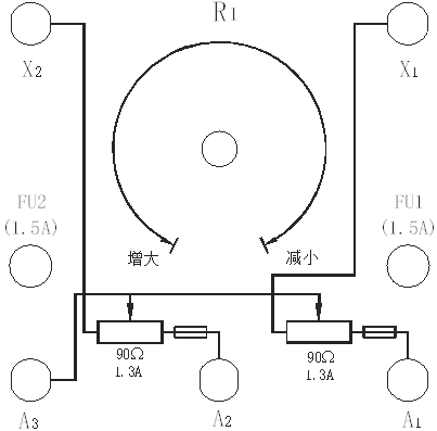 由于實驗的需要,變阻器除了做可變電阻使用外,還可采用電位器接法做分壓器用。例如他勵直流發(fā)電機勵磁電壓調節(jié)就可采用電位器接法。做分壓器時可以單只使用,也可以并聯使用。分壓器接法為: 固定電壓接在A2和X2之間,而可變電壓可以從A3和A2(或A3和A4)端引出。