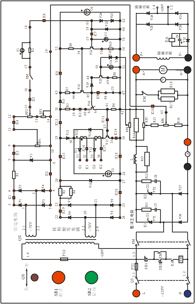 系統(tǒng)由 主電路→觸發(fā)電路→控制電路→輔助電路(包括保護、指示、報警)等。