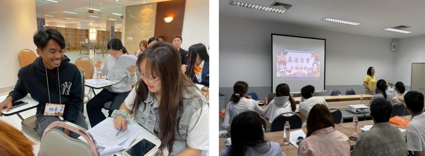 到達翁查瓦里功大學后,翁大老師首先給同學們開啟了泰語的啟蒙教學。從基礎(chǔ)會話到日常表達,老師以生動情境教學引導零基礎(chǔ)的同學快速融入。課堂互動中,同學們不僅掌握了實用語言技能,更通過語言載體感知泰國禮儀文化與社會風貌,為后續(xù)文化體驗活動奠定基礎(chǔ)。