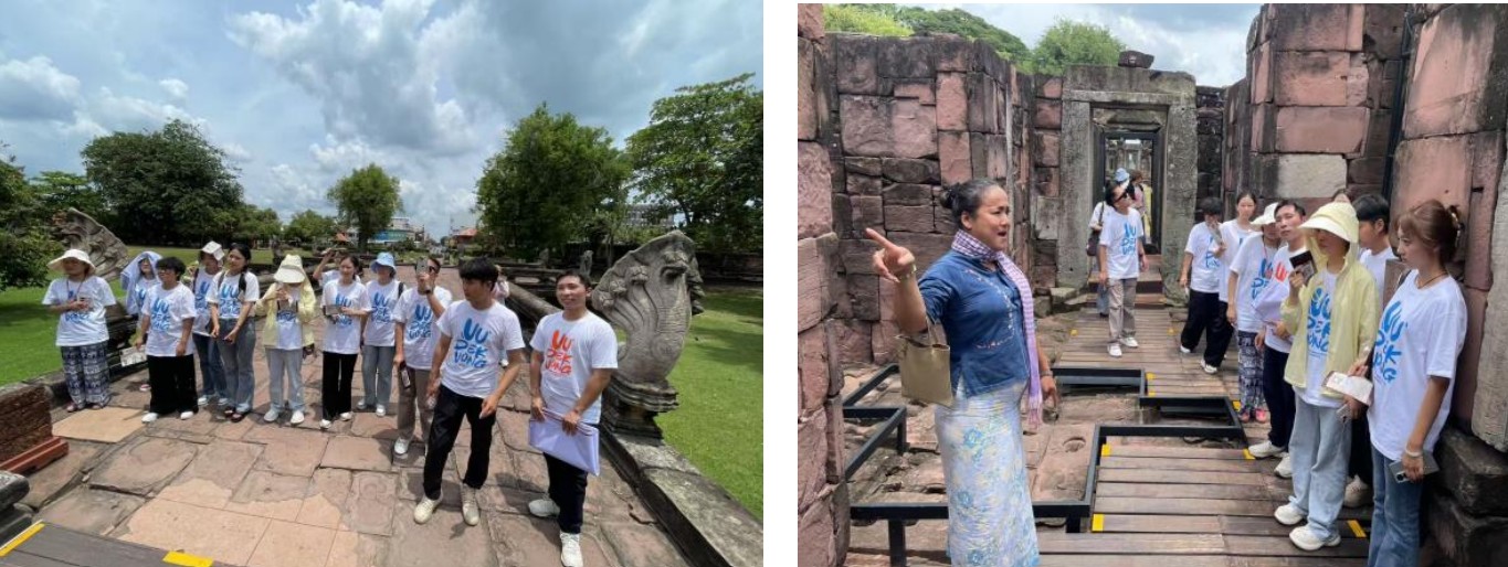同學們先后參觀了呵叻府的多處歷史古跡。潘南遷古寺的浮雕展現(xiàn)著泰國古代雕塑藝術(shù)的魅力,坦布拉薩特考古遺址留存著古老文明的印記,還有“高棉藝術(shù)明珠”之稱的披邁歷史公園,以宏大的石砌建筑重現(xiàn)了前吳哥時期的景象。