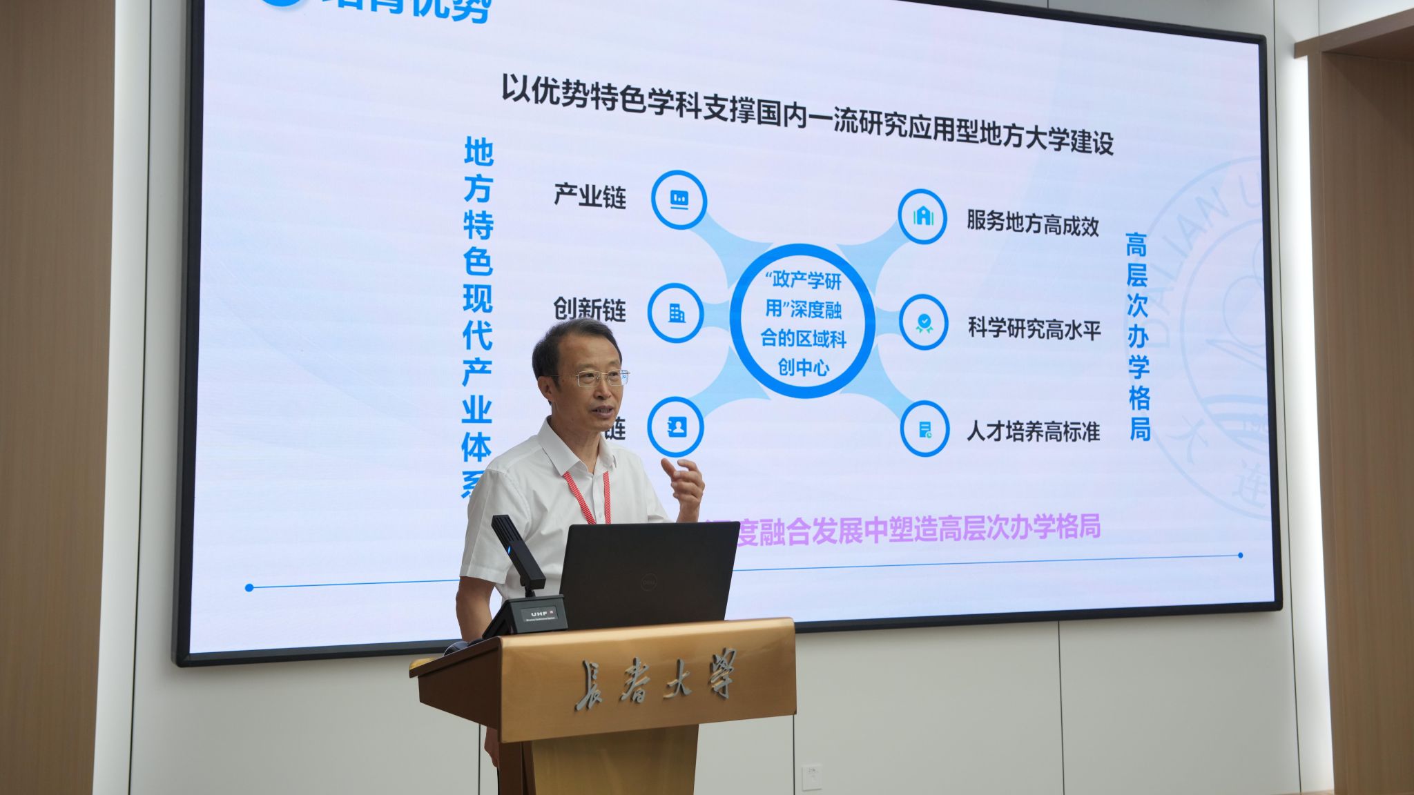 成都大學(xué)黨委副書記、校長朱明作了題為《堅(jiān)守立德樹人初心,踐行強(qiáng)校興城使命》的報(bào)告,為地方高校實(shí)現(xiàn)價(jià)值引領(lǐng)與服務(wù)地方統(tǒng)一提供了典范。