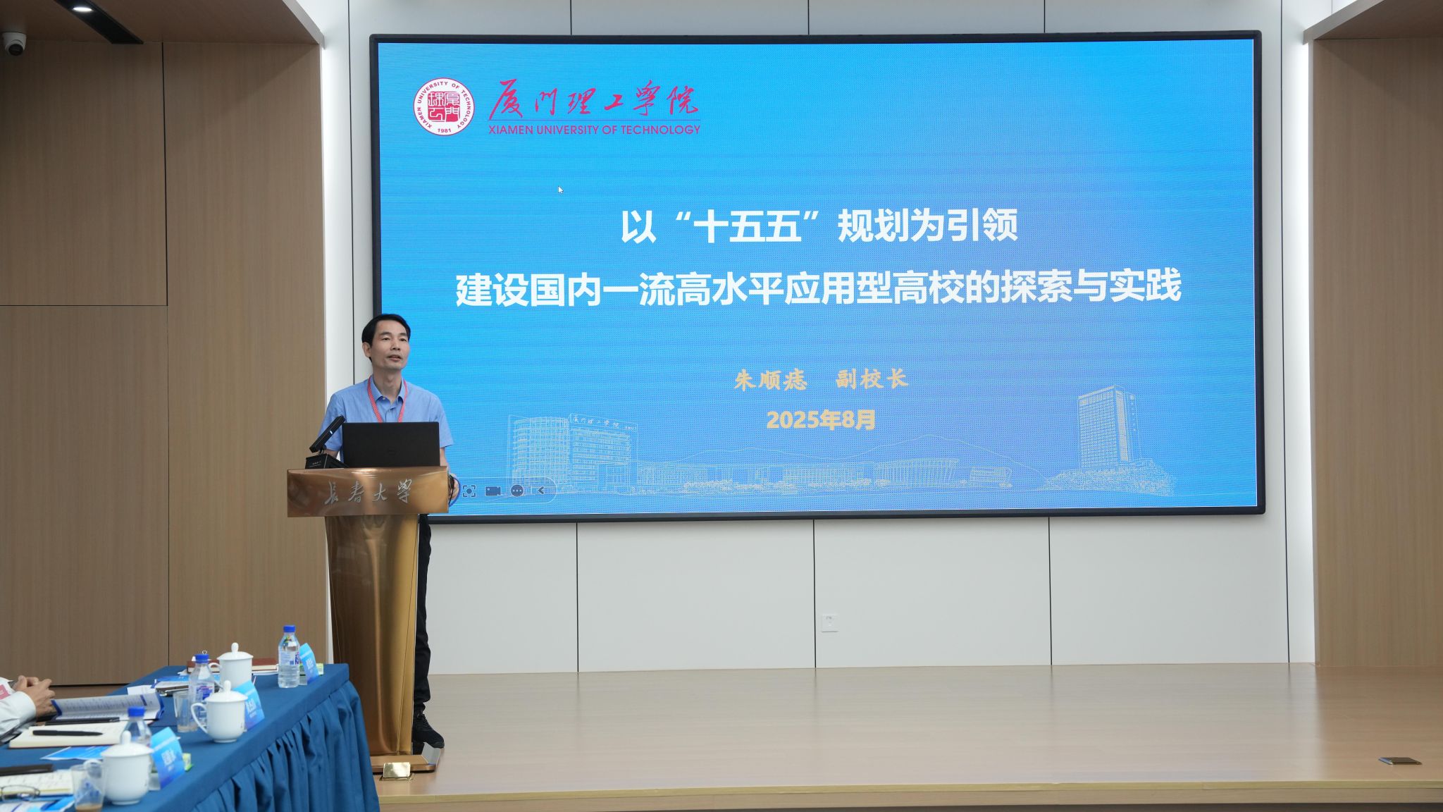 廈門理工學(xué)院副校長朱順痣作了題為《以‘十五五’規(guī)劃為引領(lǐng),建設(shè)國內(nèi)一流高水平應(yīng)用型高校的探索與實(shí)踐》的報(bào)告。