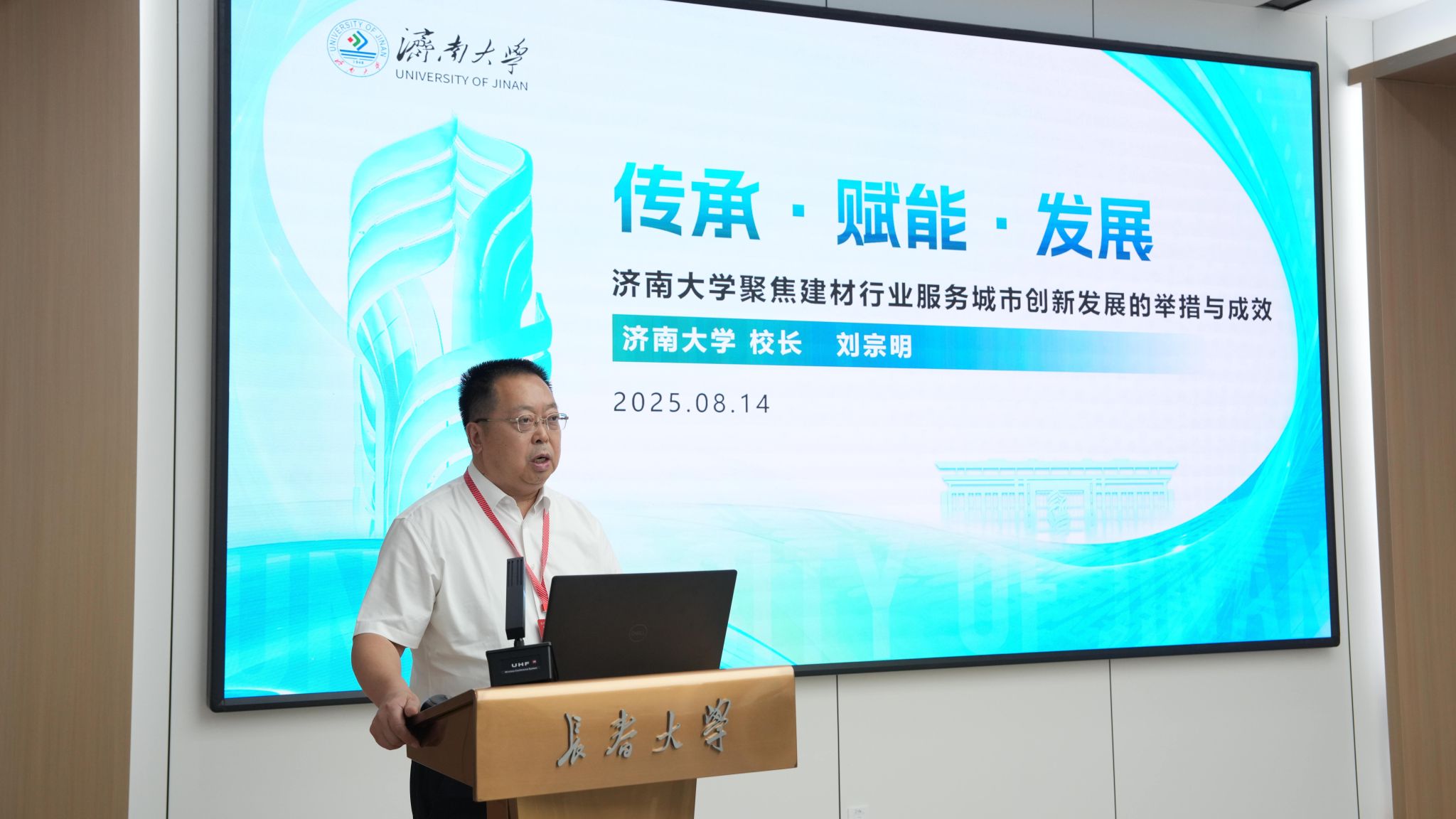 濟(jì)南大學(xué)校長劉宗明作了題為《傳承·賦能·發(fā)展——濟(jì)南大學(xué)聚焦建材行業(yè)服務(wù)城市創(chuàng)新發(fā)展的舉措與成效》的報(bào)告,為高校創(chuàng)新發(fā)展提供了有力示范。