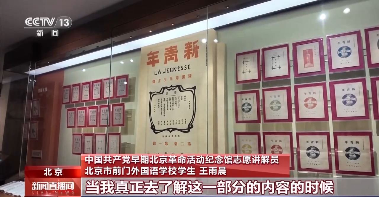 中國(guó)共產(chǎn)黨早期北京革命活動(dòng)紀(jì)念館志愿講解員 北京市前門(mén)外國(guó)語(yǔ)學(xué)校學(xué)生 王雨晨:像我剛才介紹到的銅燒水壺,毛澤東閱讀的《明恥篇》批注過(guò)的封面,《新青年》的一些展品,當(dāng)我真正去了解這一部分的內(nèi)容的時(shí)候,發(fā)現(xiàn)每一件文物都有自己背后的故事。需要把這種精神傳播給更多的人,讓更多人去了解這段歷史。