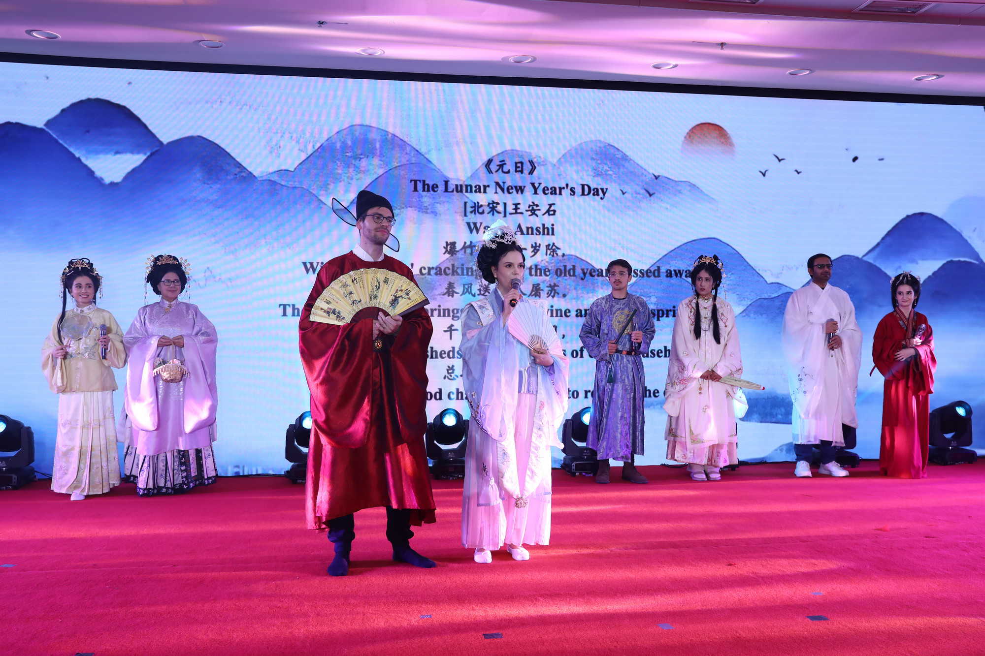 晚會(huì)現(xiàn)場(chǎng)流光溢彩、精彩紛呈,既展現(xiàn)出世界文明的多元交響,也彰顯著中華文明的深厚底蘊(yùn)。來自各國(guó)的外籍專家與學(xué)子同臺(tái)獻(xiàn)藝,以歌曲、舞蹈、朗誦、魔術(shù)等豐富形式,生動(dòng)演繹了不同文化的獨(dú)特魅力與青春活力,充分展現(xiàn)了北大國(guó)際師生開放自信、昂揚(yáng)向上的精神風(fēng)采。