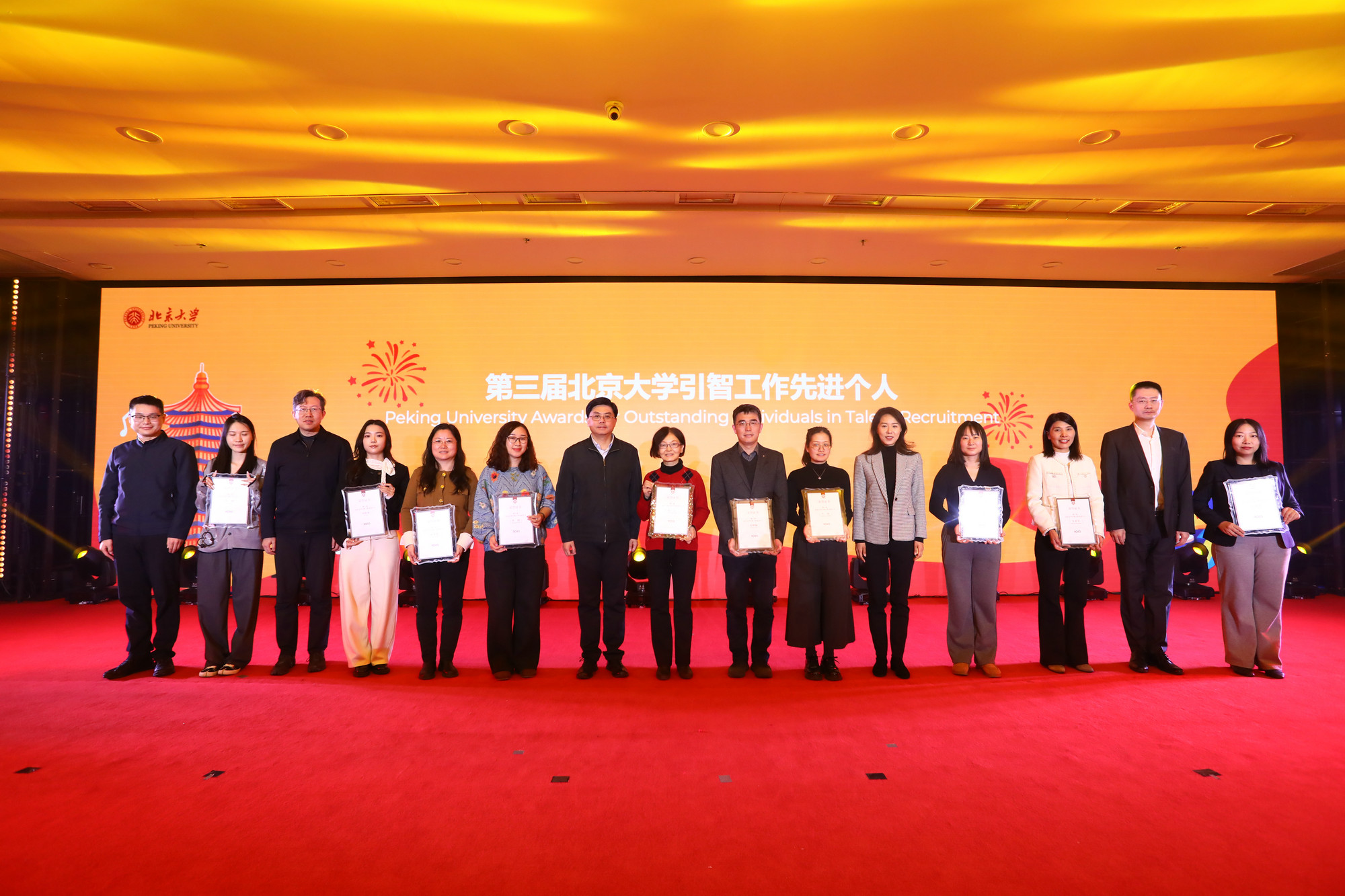 與會(huì)領(lǐng)導(dǎo)和嘉賓為“第三屆北京大學(xué)引智工作先進(jìn)單位和先進(jìn)個(gè)人”獲得者頒獎(jiǎng),為獲得“北京大學(xué)第二十二屆國(guó)際文化節(jié)年度最佳展臺(tái)”的5個(gè)國(guó)家展臺(tái)所屬留學(xué)生代表頒獎(jiǎng)。