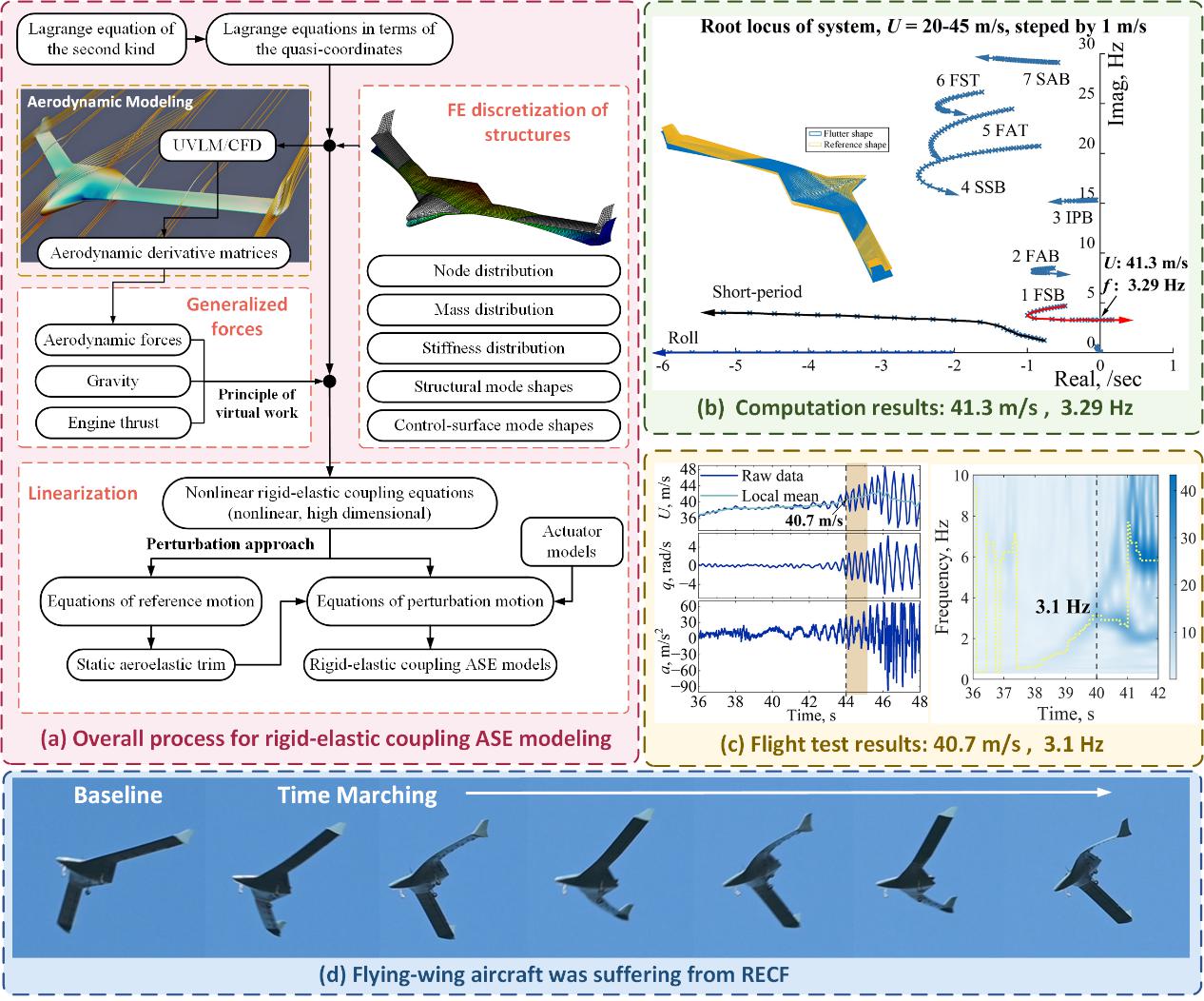 2025-12-26 08:13飛翼布局飛行器是新一代戰(zhàn)略轟炸機、高空無人偵察機首選的氣動布局。然而,這類飛行器的機翼彎曲頻率低,導(dǎo)致其剛體短周期俯仰模態(tài)與機翼低階彈性模態(tài)在氣流作用下相互耦合,誘發(fā)剛-彈耦合顫振,嚴重限制飛行器的飛行包線和任務(wù)執(zhí)行能力。如何突破剛-彈耦合顫振屏障已成為新一代飛翼布局飛行器研制亟待解決的核心難題。