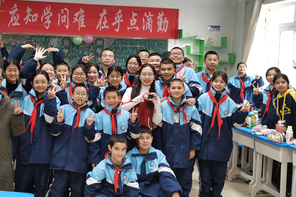 “我剛來(lái)這里時(shí),有孩子好奇:‘老師,你為什么要來(lái)離家這么遠(yuǎn)的地方工作呢?’我告訴他們:‘因?yàn)檫@里有你們!’而現(xiàn)在一位同學(xué)告訴我:‘老師,我想上哈工大。’我問她原因,她笑著回答我:‘因?yàn)槟抢镉心惆,我也想去看看哈工大的樣子?rsquo;這個(gè)跨越時(shí)間和空間的約定,成了我這一年最難忘的回憶。”劉佳諾上中學(xué)的時(shí)候,原本因?yàn)槌煽?jī)不理想而自卑,但受一位老師的影響,重拾了信心,如愿考入了哈工大。這件事也在她心里埋下了一顆“人民教師”的種子。所以她畢業(yè)時(shí)毅然選擇加入研支團(tuán),在她的鼓勵(lì)與幫助下,這里的很多學(xué)生不僅實(shí)現(xiàn)了成績(jī)的提升,更找到了努力的人生意義。