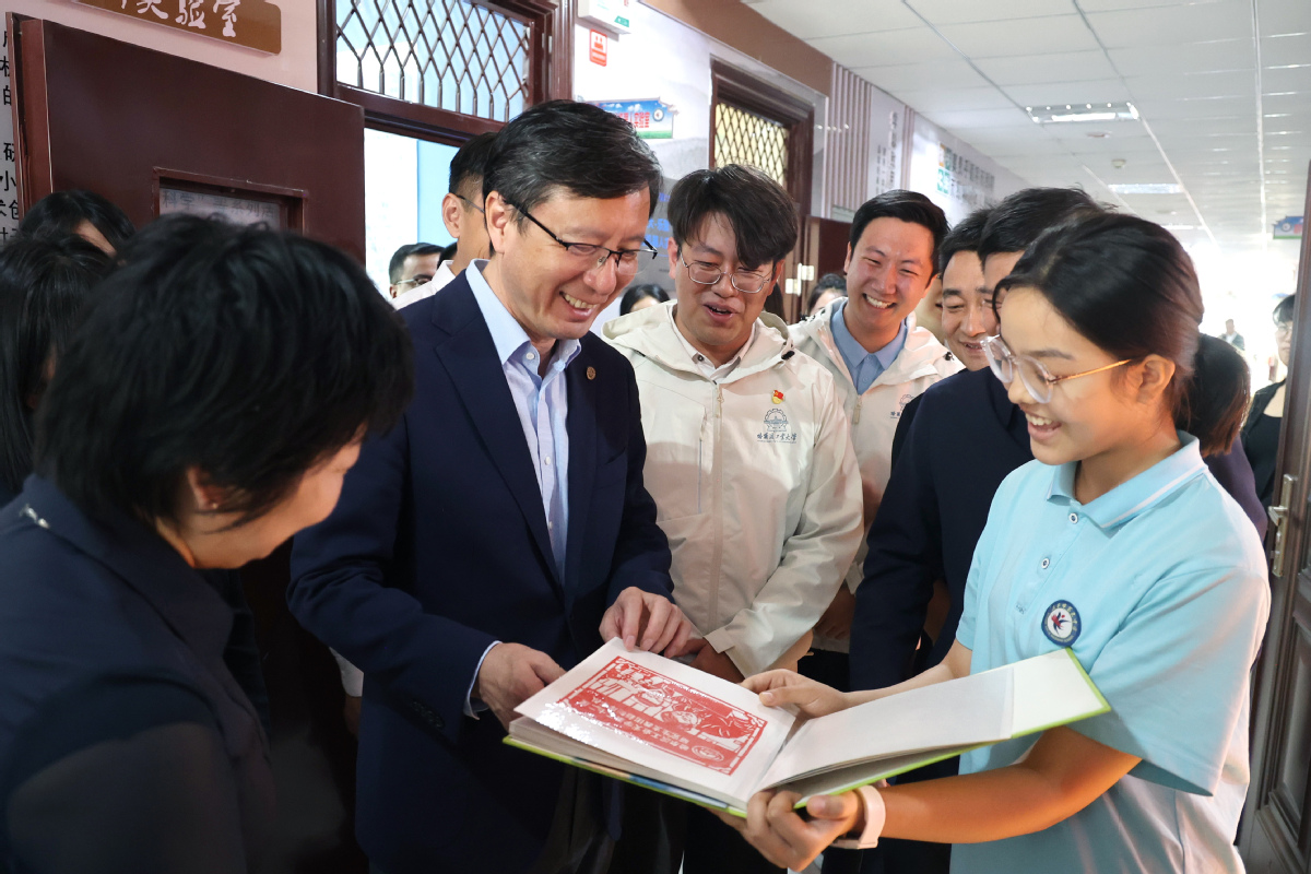 觀看庫(kù)車三中剪紙社團(tuán)學(xué)子送給哈工大的剪紙作品