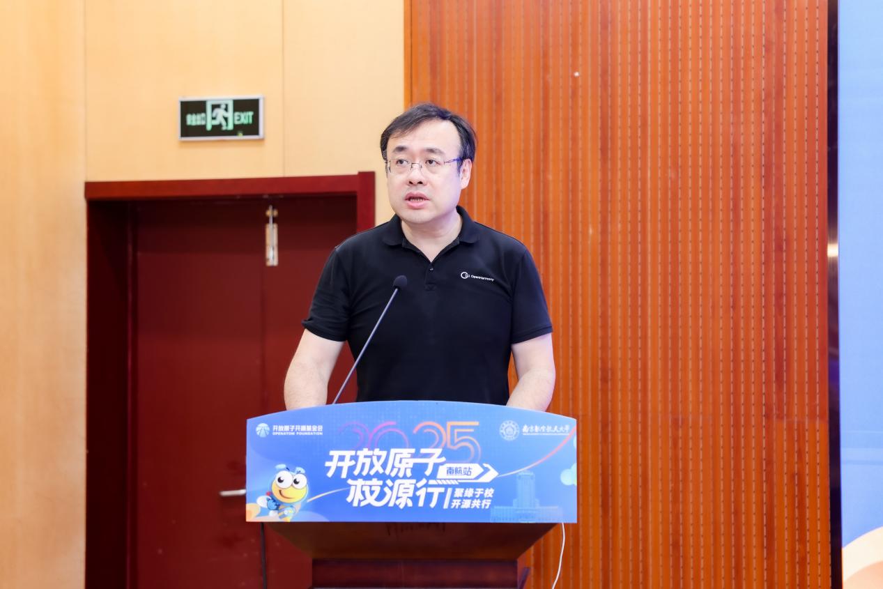 開放原子開源基金會教培部負(fù)責(zé)人韓江在致辭中提到,開源作為數(shù)字時代的新型生產(chǎn)方式,不僅是推動產(chǎn)業(yè)變革的中堅力量,更是構(gòu)建人才生態(tài)建設(shè)體系的活水源泉。希望通過“校源行”活動,推動開源理念、技術(shù)、平臺和工具等“進(jìn)校園”“入課堂”“強(qiáng)教學(xué)”,培養(yǎng)更多具備開源素養(yǎng)與實(shí)踐能力的高質(zhì)量人才。