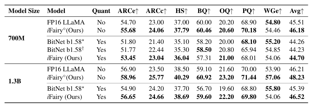 2025-08-17 09:16為破解大模型部署與推理成本高昂的困境,近日,北京大學(xué)楊仝教授團(tuán)隊(duì)首次提出名為iFairy的超低比特量化方案。該方案創(chuàng)新性地利用復(fù)數(shù){±1, ±i}對(duì)模型權(quán)重進(jìn)行2-bit量化,在實(shí)現(xiàn)1/8極致壓縮與“無(wú)乘法”推理加速的同時(shí),語(yǔ)言建模能力和下游任務(wù)表現(xiàn)反超了同尺寸的全精度LLaMA基座模型。相關(guān)論文題為“iFairy: the First 2-bit Complex LLM with All Parameters in {±1, ±i}”。