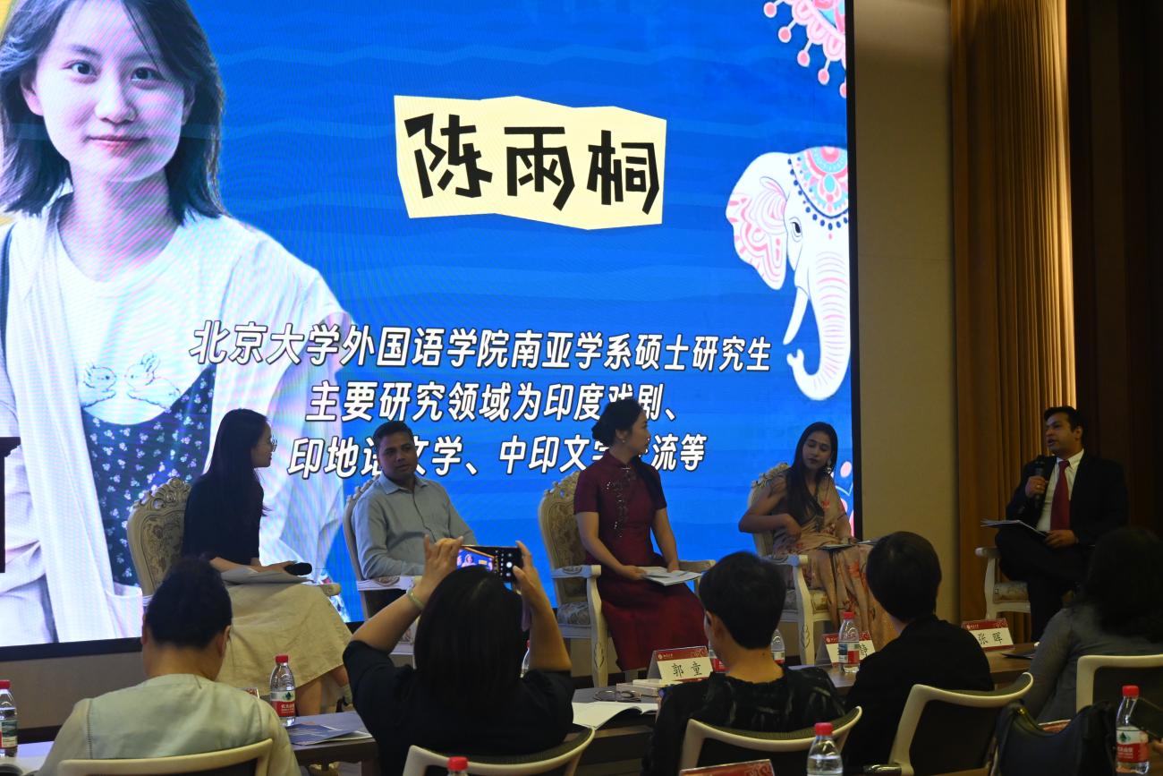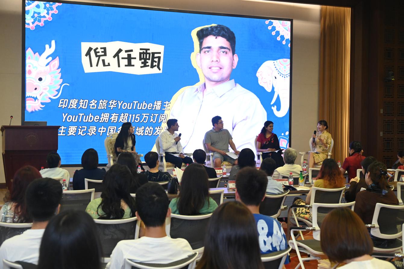 在印地語對話專場,北大外國語學(xué)院南亞學(xué)系研究生陳雨桐從印地語學(xué)習(xí)經(jīng)歷出發(fā),呼吁新時代的中印青年應(yīng)通過學(xué)習(xí)語言加深理解、深化友誼。北京外國語大學(xué)印度籍教師魏漢回顧了自己與中國語言、文化之間的深厚聯(lián)系。張肖結(jié)合個人社媒頻道“MAIN HOON ANJALI”五年來的運營經(jīng)歷,呼吁青年繼續(xù)搭建中印友誼之橋。在北京擁有兩家印度餐廳的森朵施(SANDO SHI)分享了自己從印度到中國的旅程,強調(diào)了文化交流和友誼的重要性。